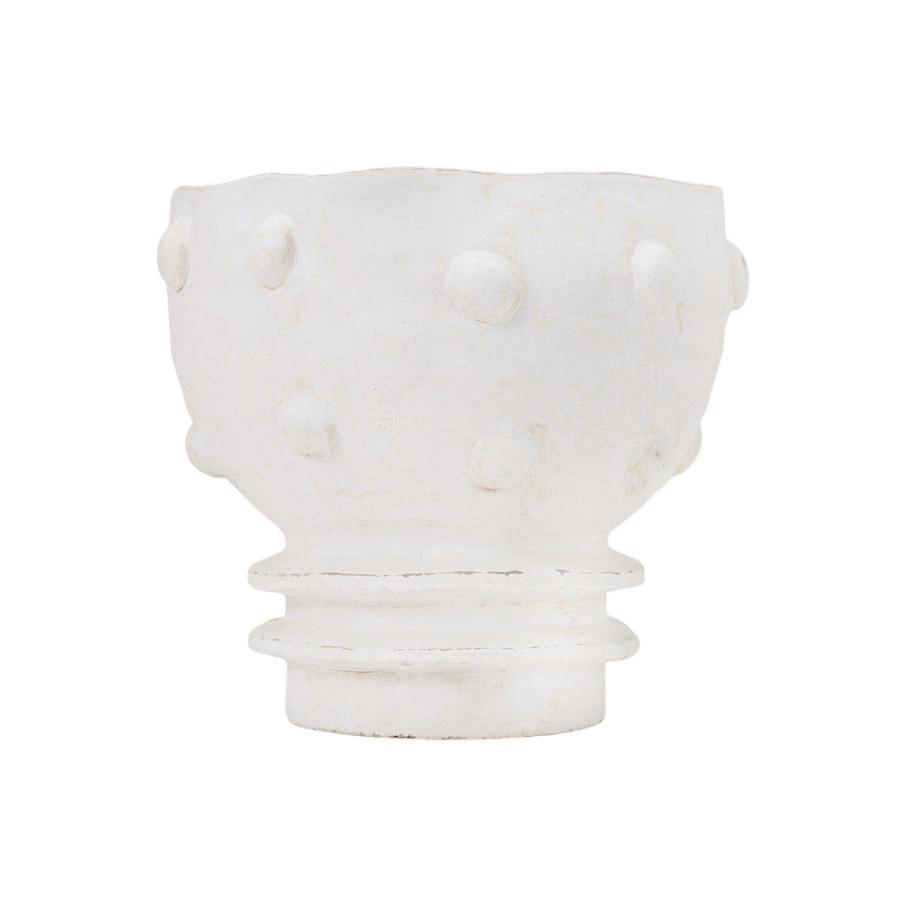 Introduce a touch of sophistication and elegance to your home with our Blissful Bulb Vase. Crafted from artisanal white cement, this stunning decorative accent boasts a unique bulbous silhouette adorned with raised dot patterns. Standing 8 inches tall, it catches both light and attention with its textured surface. Perfect for any space in need of a stylish centerpiece.