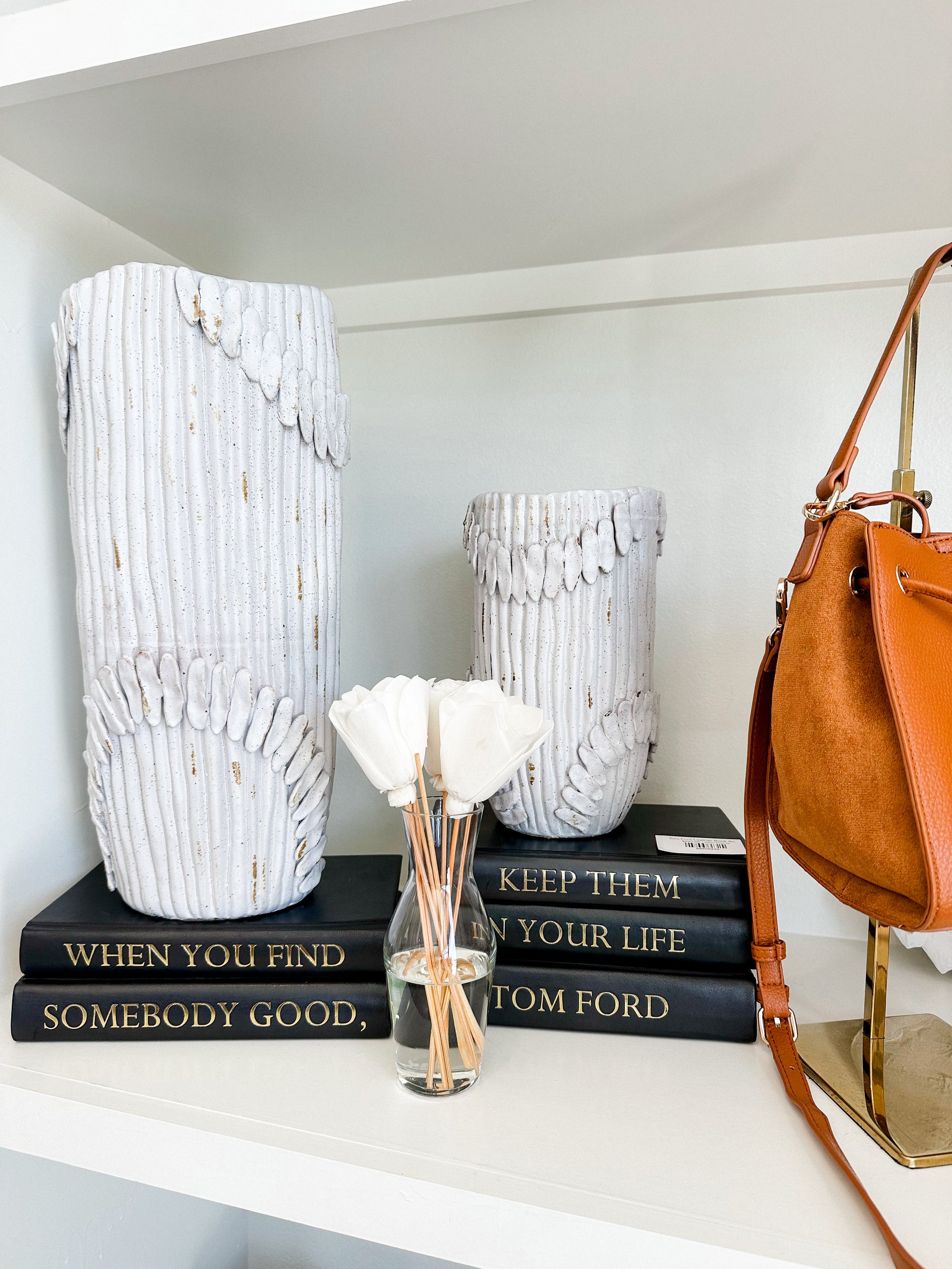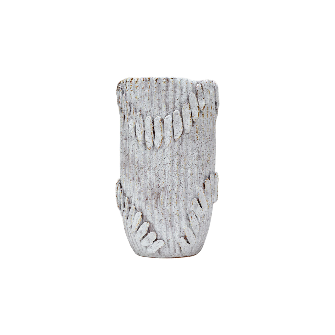 Elevate your decor with our Short Haldan Vase. Crafted with a chic balance between modern design and rustic allure, this vase exudes sophistication. Standing at 10 inches tall with a 5.5-inch diameter, its textured surface in a sleek gray tone adds depth and tactile appeal. The organic pattern and subtle speckles give this cylindrical clay vase a contemporary edge.