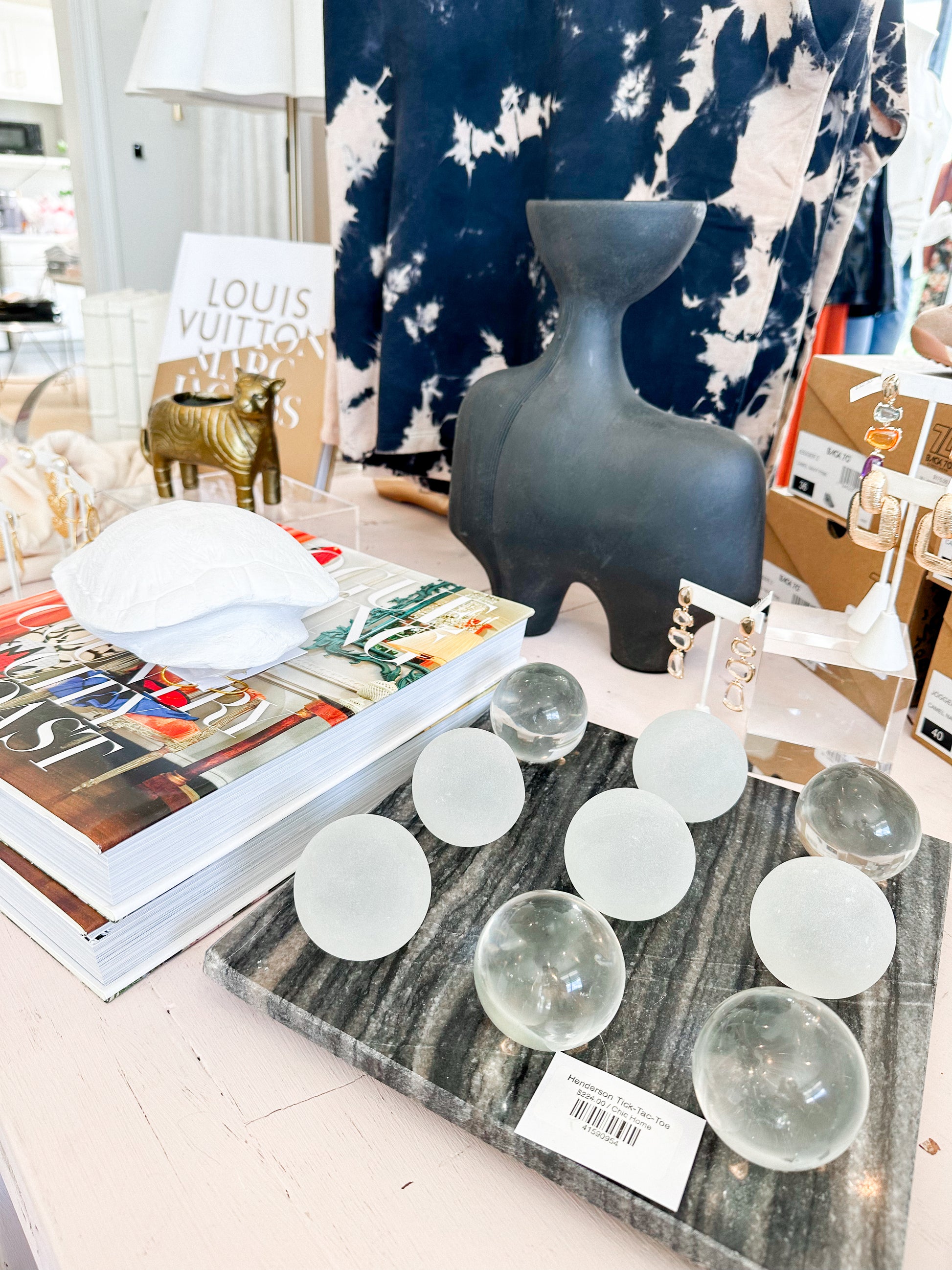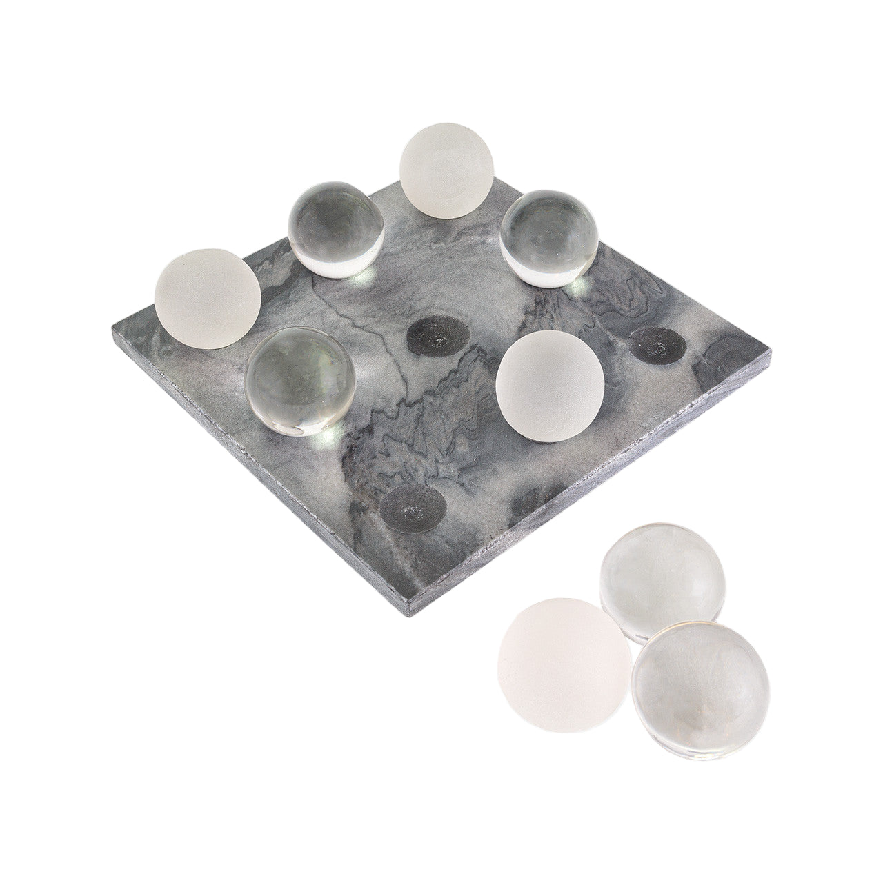 Elevate your living space with the Henderson Tic-Tac-Toe board, a sophisticated and timeless addition to any modern home. Crafted from luxurious gray marble, this stunning diamond-shaped game board measures 11"x11" and stands at 3" tall, creating a striking centerpiece for coffee tables, desks, or entertainment areas. Enjoy the elegant and unique natural veining while playing with the smooth, polished spherical pieces.